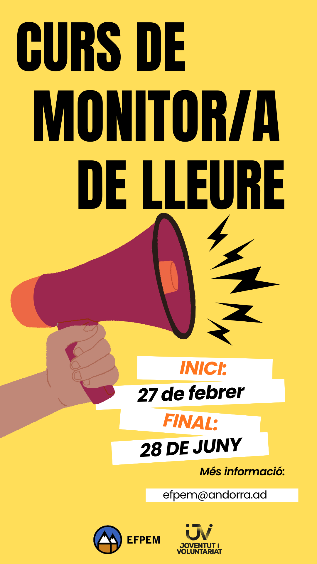Des de l’EFPEM, centre de formació adscrit al Ministeri encarregat de l’Educació, amb la col·laboració del Departament de Joventut, oferim un curs de monitors d’activitats de lleure.